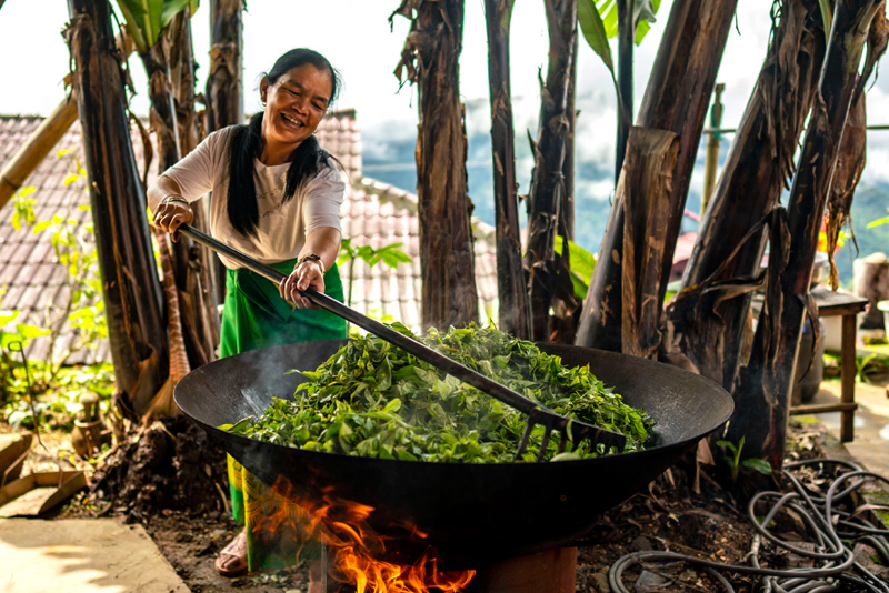云南省沧源县班洪乡班洪村村民在炒茶(2021年8月20日摄)。新华社记者 江文耀 摄