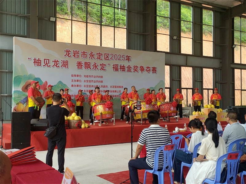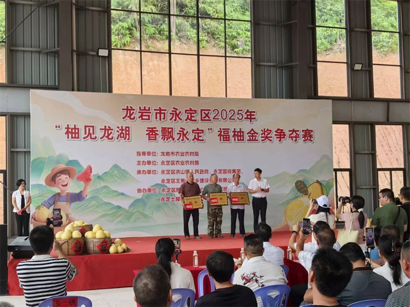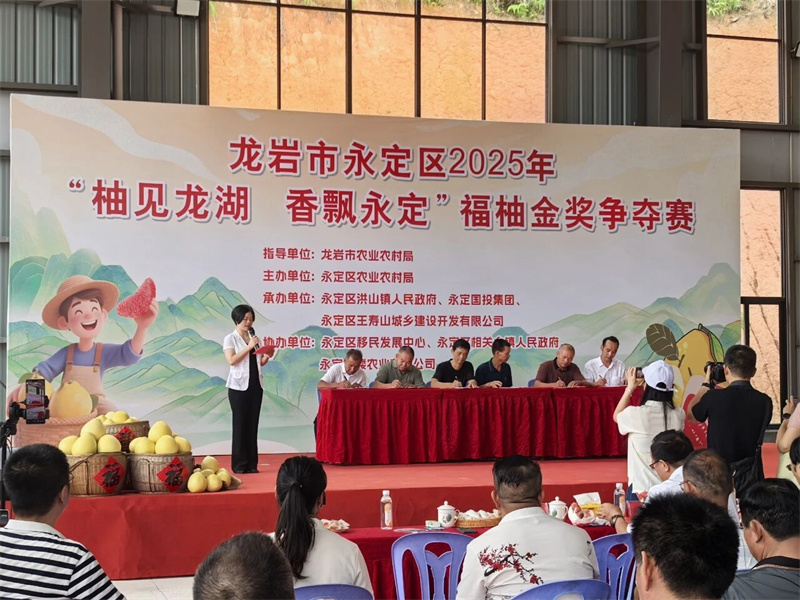 9月19日,永定区2025年“柚见龙湖·香飘永定”福柚金奖争夺赛在洪山镇中村村蜜柚分拣中心举行。活动由龙岩市农业农村局指导,永定区农业农村局主办。
