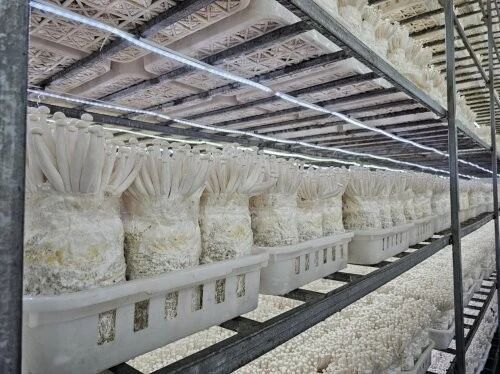 源美公司与福建农林大学、福建省农科院食用菌研究所紧密合作,积极引进优良品种,集成应用温、光、湿、气智能调控技术,将菌菇从接种到出菇的周期稳定在150天以内,实现了食用菌的标准化、智能化生产。