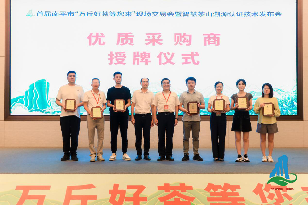 (武夷山市茶业同业公会会长、首批国家级非物质文化遗产武夷岩茶(大红袍)制作技艺传承人刘国英大师作《武夷岩茶的冲泡与品鉴方法》讲解为感谢全国各地远道而来的采购商朋友们对此次活动的支持,主办单位精心评选出广东省潮汕经济文化联合会、八马茶业股份有限公司、福建三简茶界供应链有限公司、武夷星茶业有限公司、武夷山水品牌运营有限公司、武夷山香江茶业有限公司、上海岸屿时装有限公司等一批优质采购商,并为其授牌。