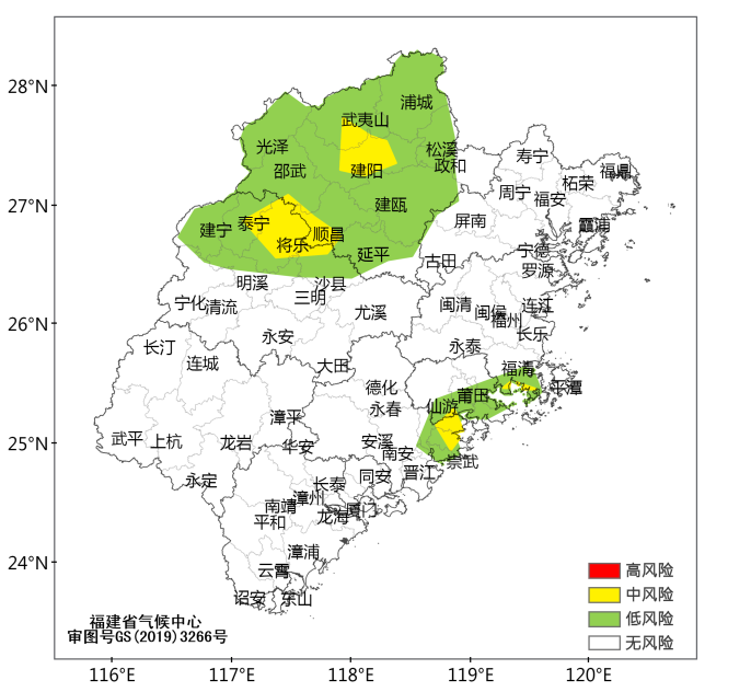 图1 2025年10月福建省高温灾害(左)和干旱灾害(右)风险预警