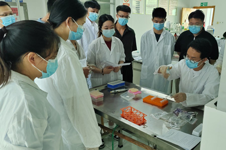 本次培训采取了“理论授课+实验操作”相结合的综合模式。理论授课内容主要包括生物安全知识、荧光PCR检测原理及注意事项、血凝与血凝疑抑制实验、布病与口蹄疫ELISA实验等血清学实验检测原理和注意事项等。实验操作培训就非洲猪瘟病毒实时荧光PCR检测,高致病性禽流感血凝与血凝抑制、布病虎红平板凝集等实验的前期准备、样品预处理、各项实验的关键操作步骤及操作细节等进行了现场演示。演示过程中细致解答参训人员现场提出的问题,分享在检测操作中如何做好个人防护的经验和方法。演示后由参训人员进行各项实验实际操作。