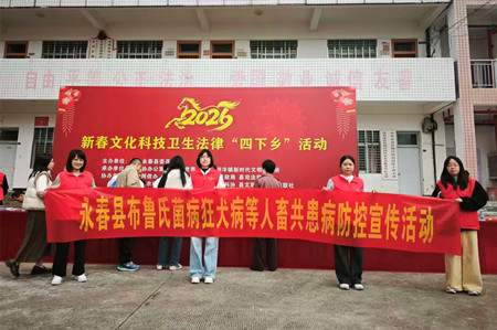 近日,永春县农业农村局以新春文化科技卫生法律“四下乡”活动为契机,组织专业技术人员前往湖洋镇开展布鲁氏菌病等人畜共患病防控知识科普宣传活动,助力筑牢农村公共卫生防线。