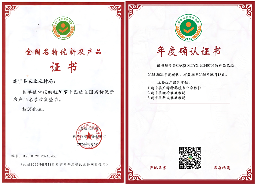 今日,要向大家介绍的全国名特优新农产品,是三明市建宁县的特产——桂阳萝卜(编号:CAQS-MTYX-20240706)。