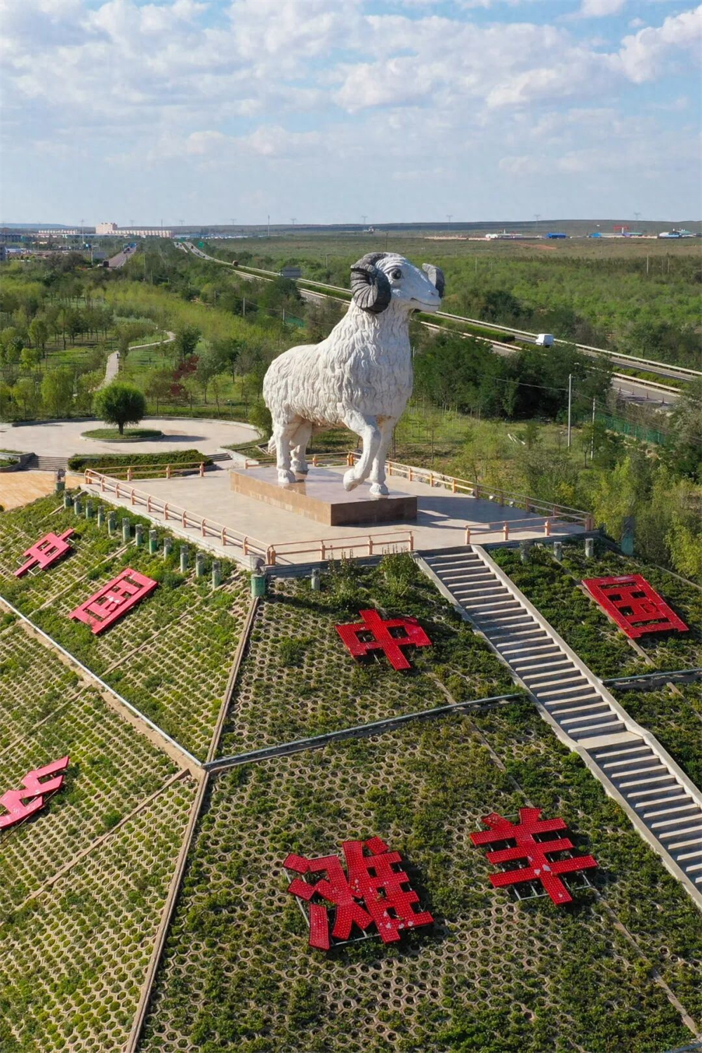 盐池县巨大的滩羊雕像 图源@地道风物 摄影/薛月华