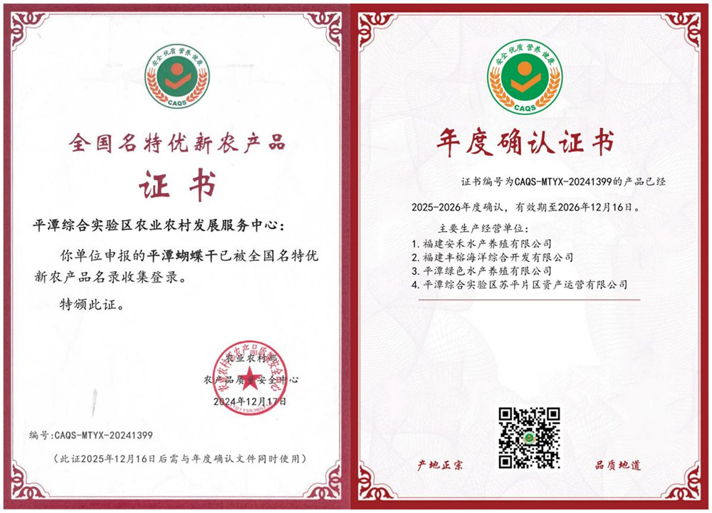 今日,要向大家介绍的全国名特优新农产品,是福建省平潭综合实验区的特产——平潭蝴蝶干(编号:CAQS-MTYX-20241399)。