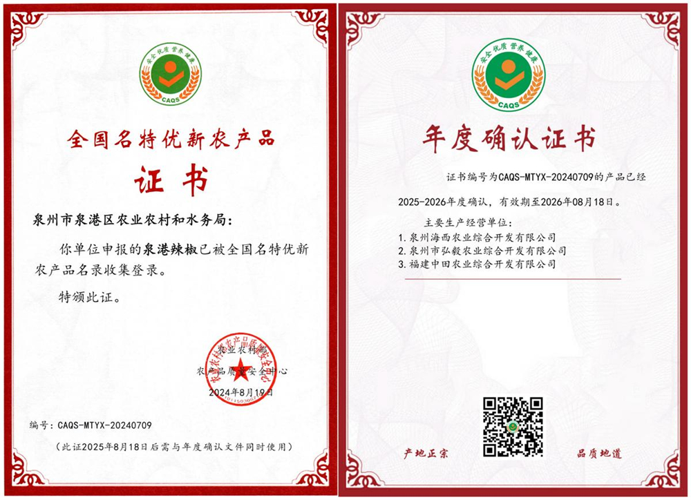 今日,要向大家介绍的全国名特优新农产品,是泉州市泉港区的特产——泉港辣椒(编号:CAQS-MTYX-20240709)。