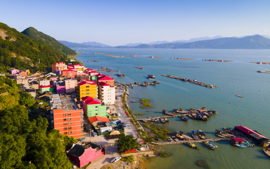 海滨田园风光:整个宁海村宛如一幅“海上田园、多彩渔村”的美丽画卷。在碧海蓝天的映衬下,海岸沿线错落有致的坐落着120多幢五彩斑斓的房子,仿佛走进一个多彩的梦幻童话国度。村庄后面高山耸立,植被茂盛,与辽阔海上养殖示范区交相辉映。多彩海湾,风光无限。
