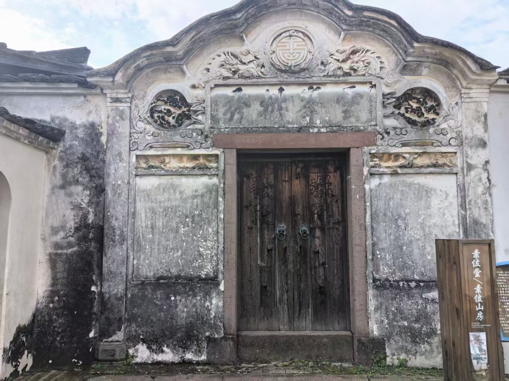 ——素位山房:建于1920年,门楼顶为半圆形,沿边塑波浪状,门楣上是“云峰拱秀”四字,再上塑是一圆形的“吉”字图案,两边各塑一条腾龙两两相对,呈双龙戏珠状。