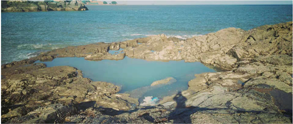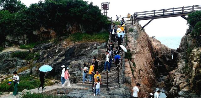 自然风光:“一礁三井六崖弄九熔脉”特色景观,属海蚀地貌和风蚀石窝地貌,具有乌黑火山碎屑岩典型特征,其中:“一礁”即鳄鱼乌礁,形似鳄鱼的火山岩礁石,退潮时则可见“金龟”奇观;“三井”指大渔井、小渔井和小喷井等火山喷发遗迹;“六崖弄”为火山熔岩侵蚀形成的平后弄、田牛灶弄、田下弄、寒竹弄、赤脚礁弄、草鞋弄等6个深崖壁弄;“九溶脉”是分布在每个崖弄旁的9条黑色熔岩,为早期火山溶浆岩脉。